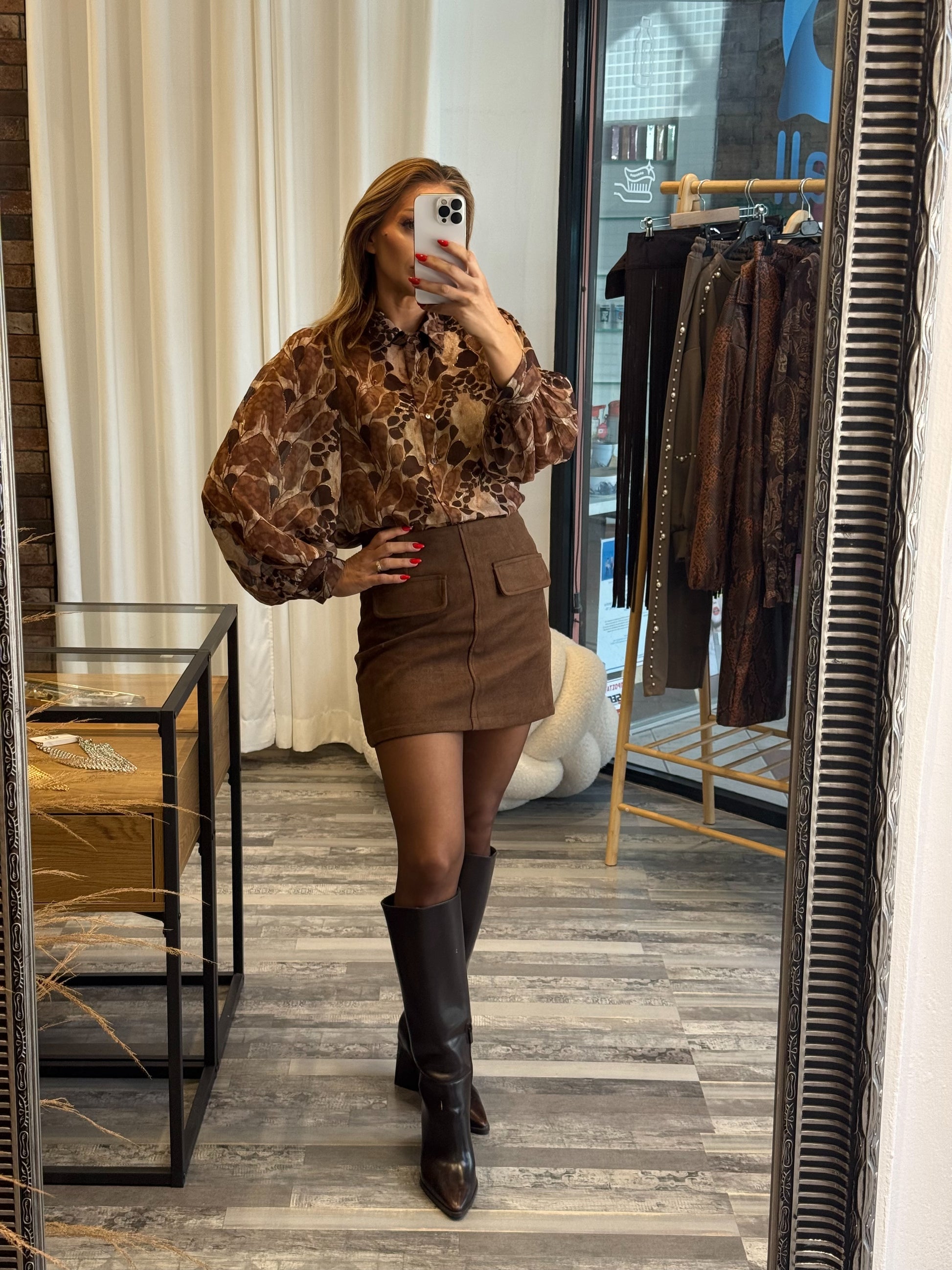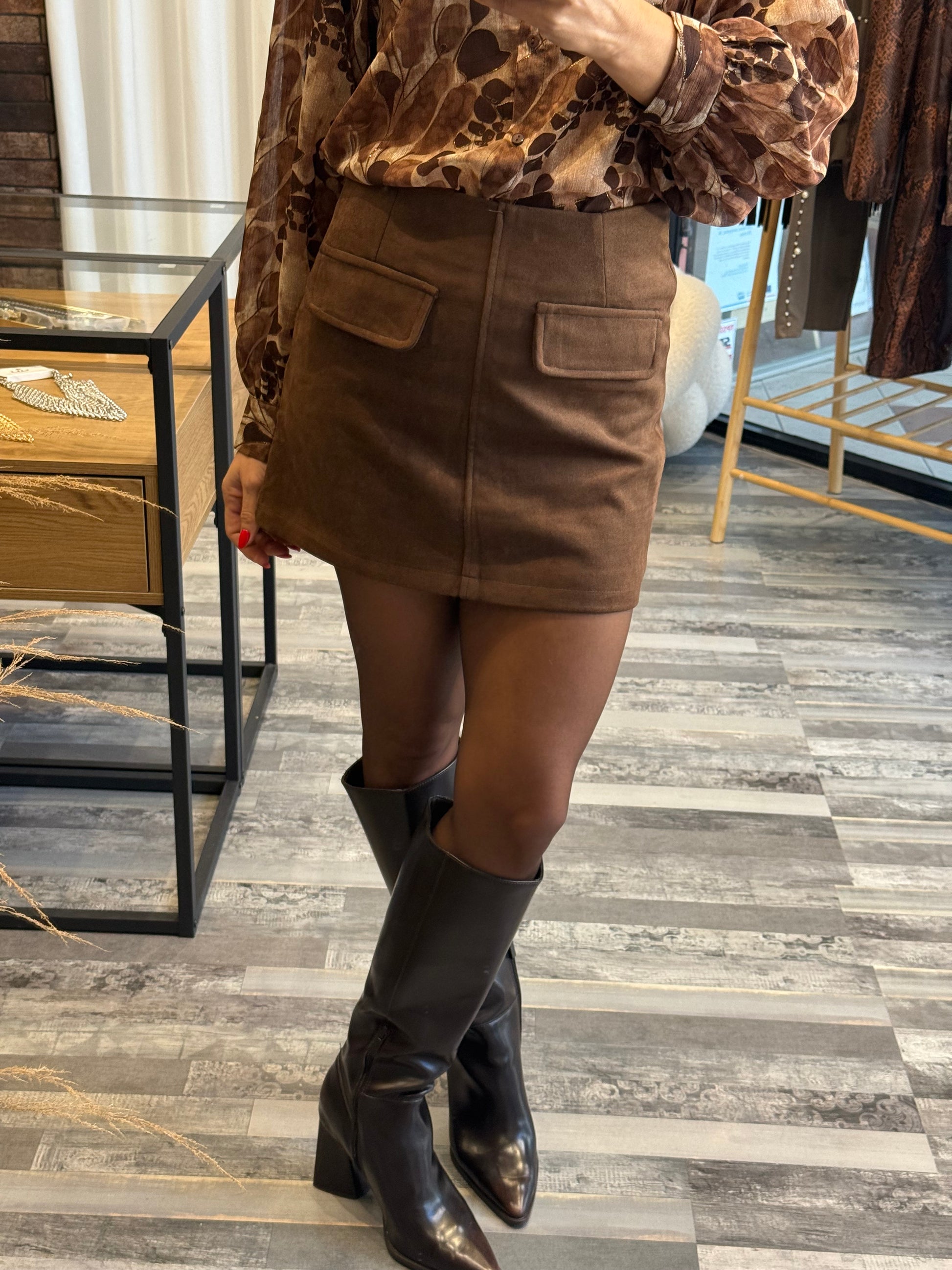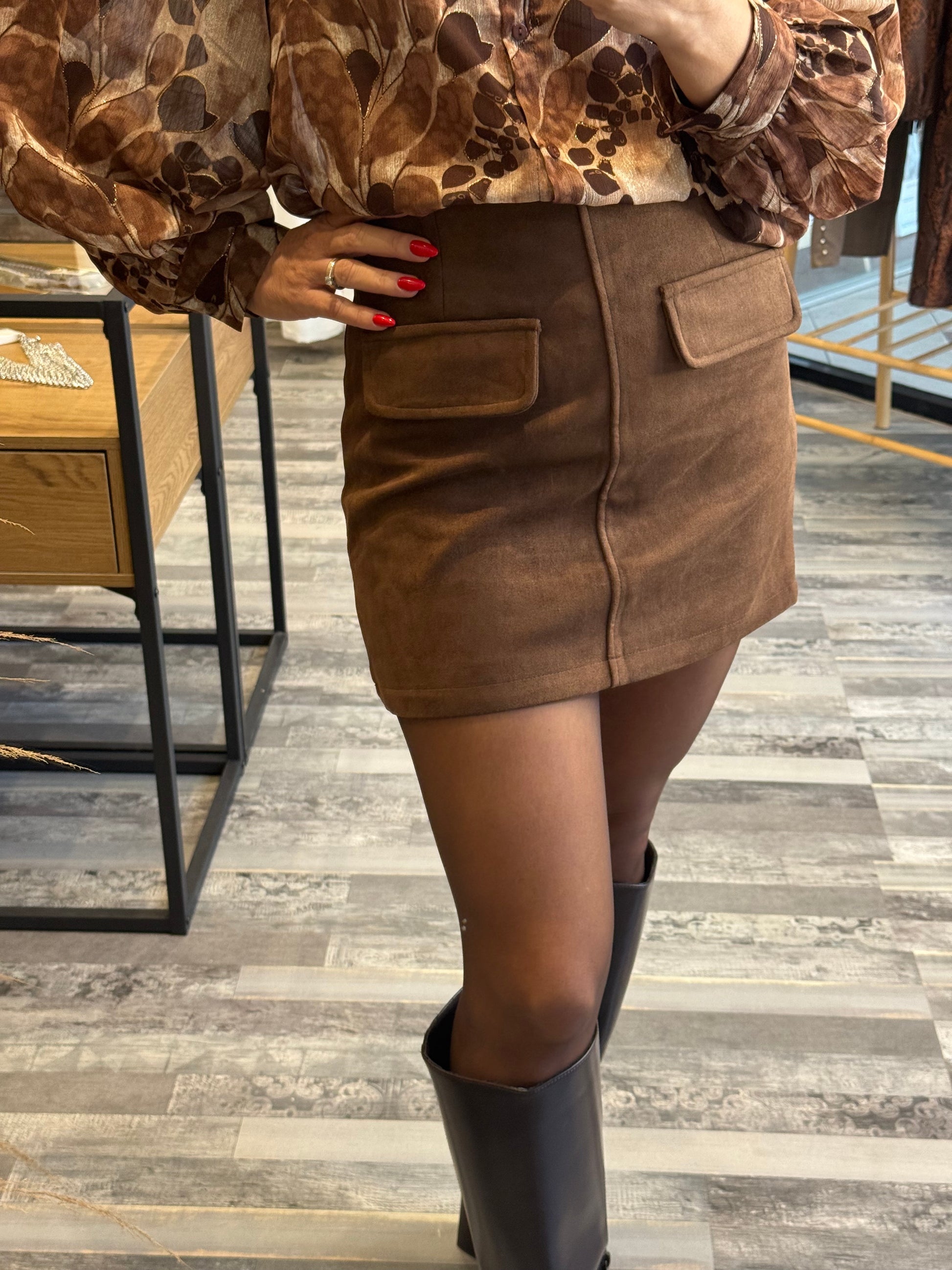 Καφέ Φούστα σε Καστόρινη Υφή