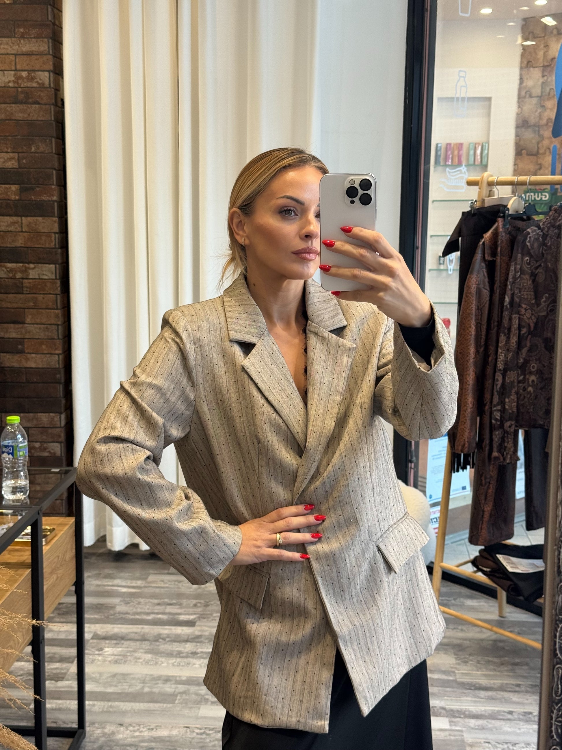 Μπεζ Σακάκι με Μαύρες Πέτρες