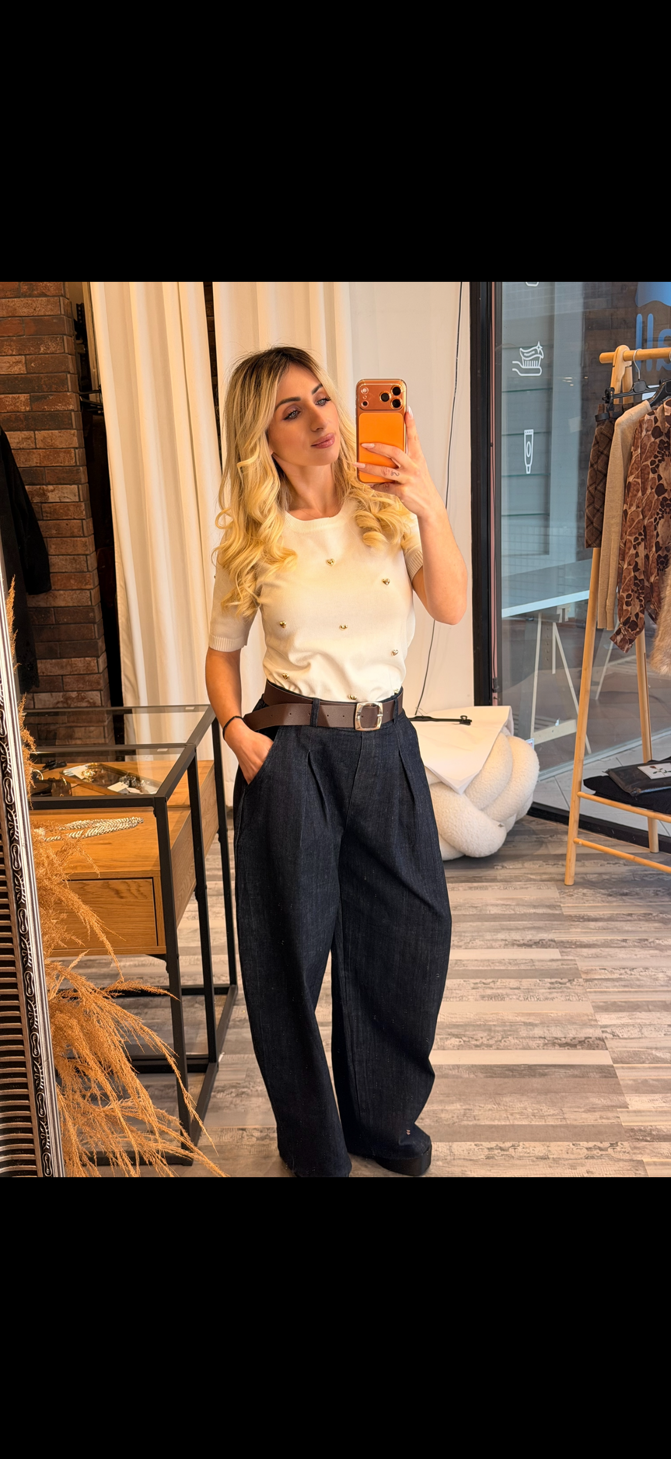 Μπλούζα με λεπτή πλέξη και χρυσές καρδιές