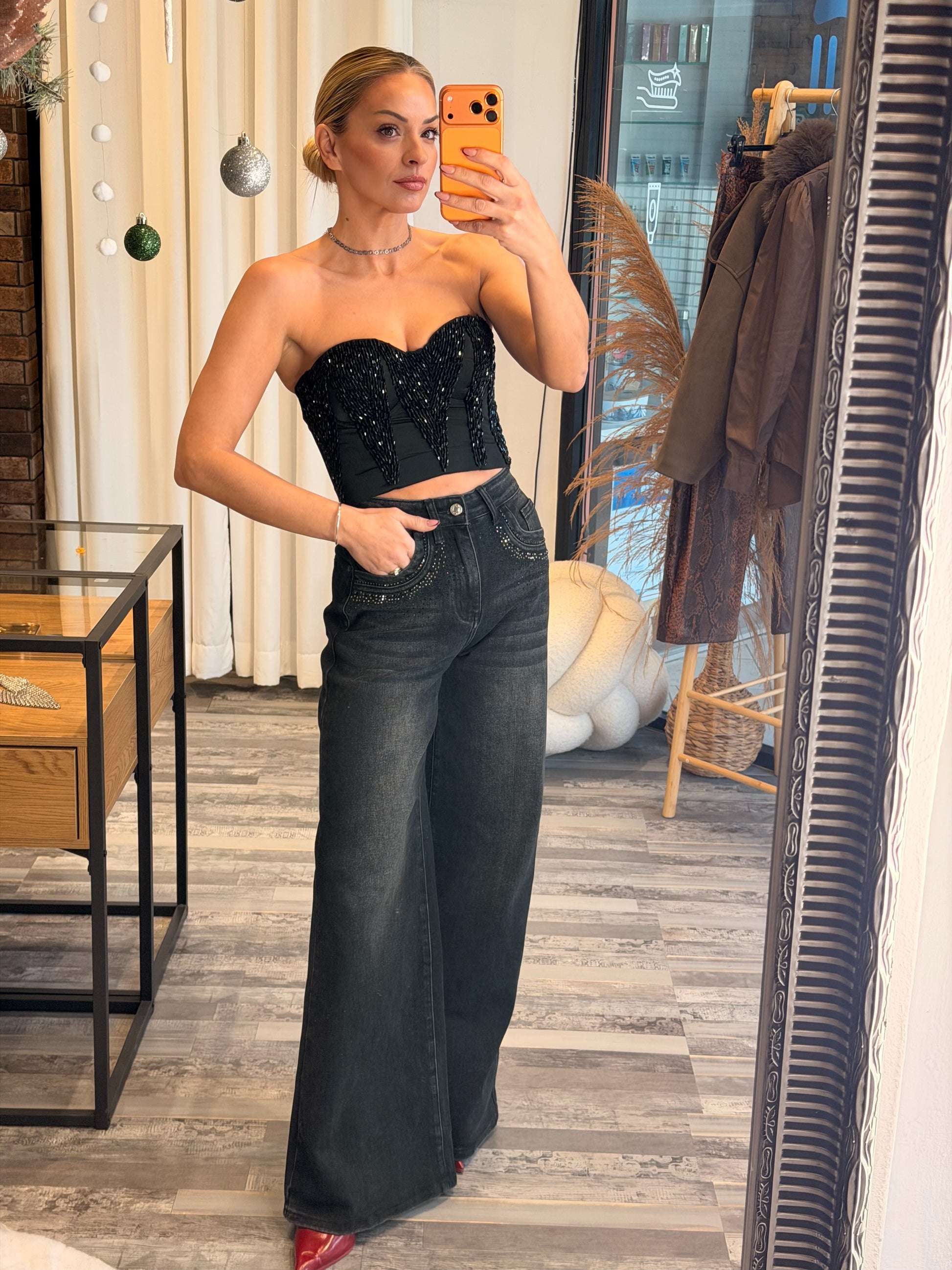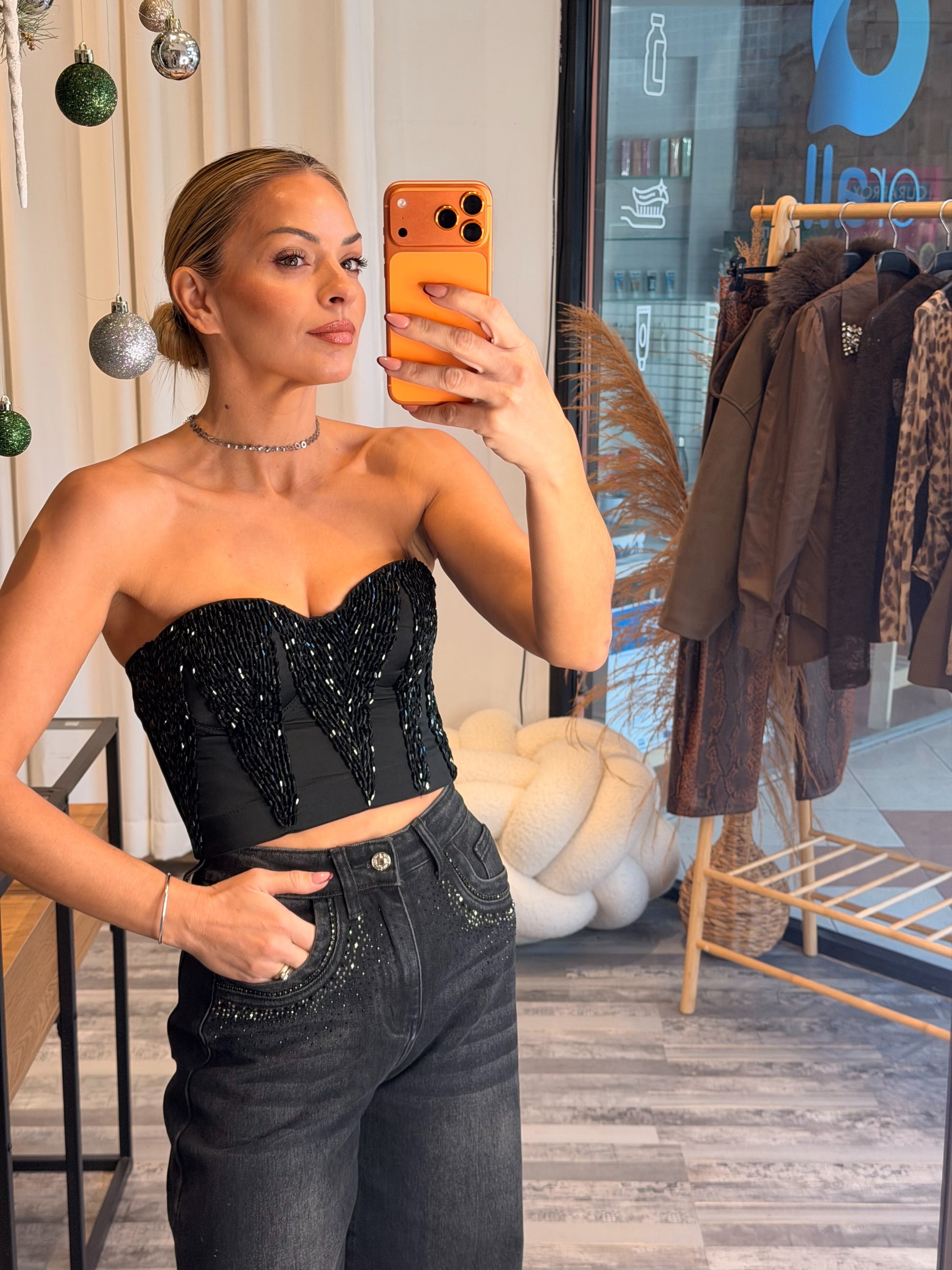- Λεπτομέρειες: All-over διακόσμηση με πέτρες