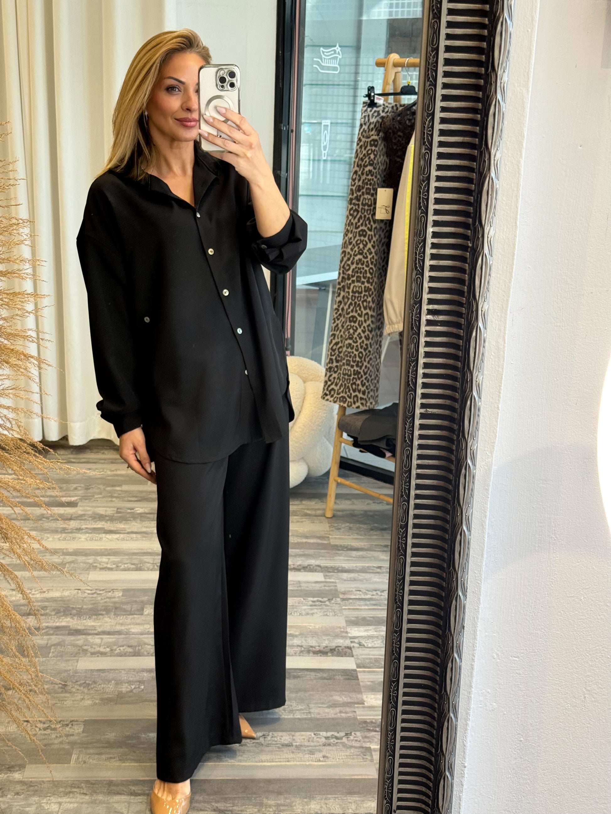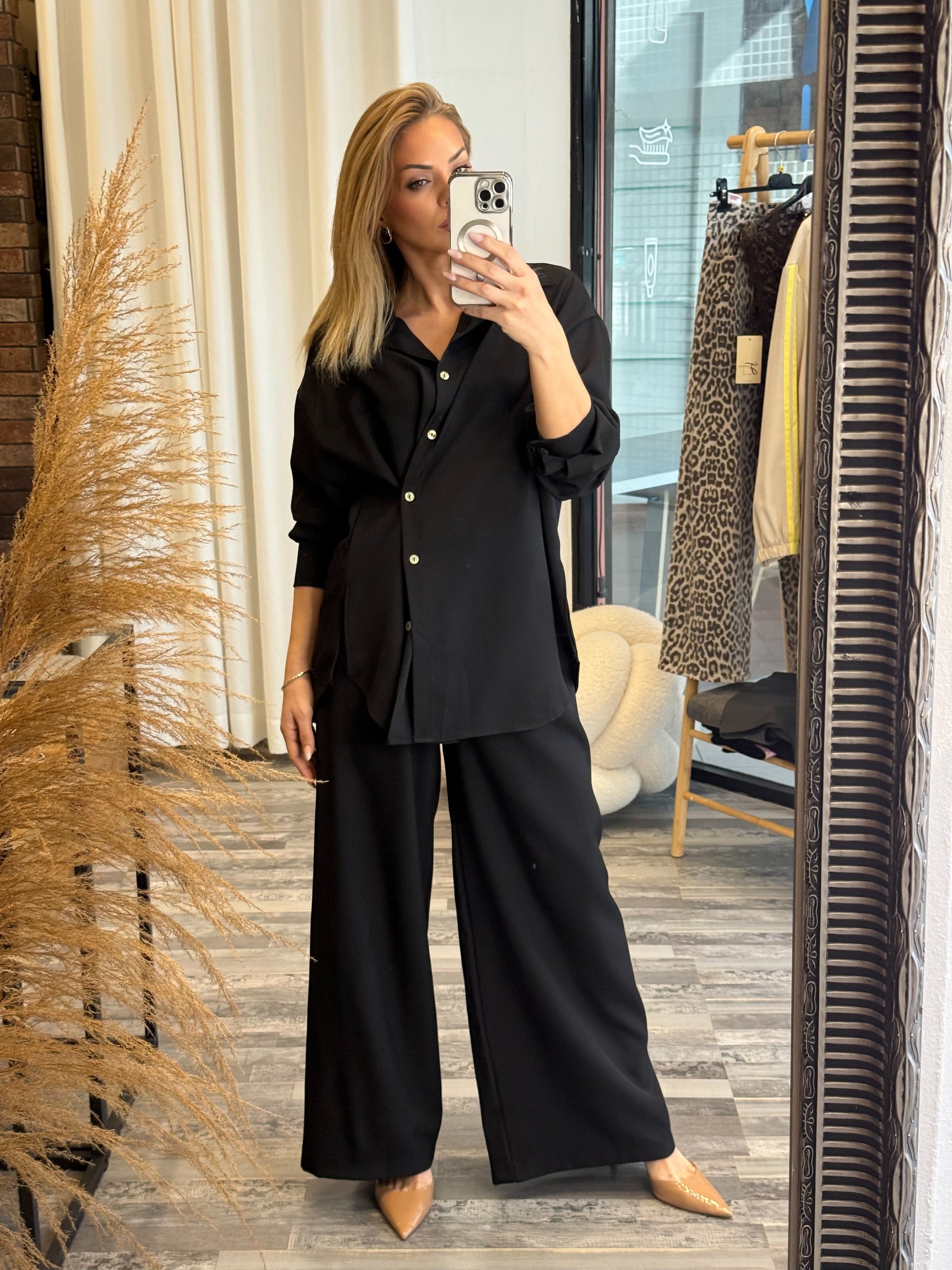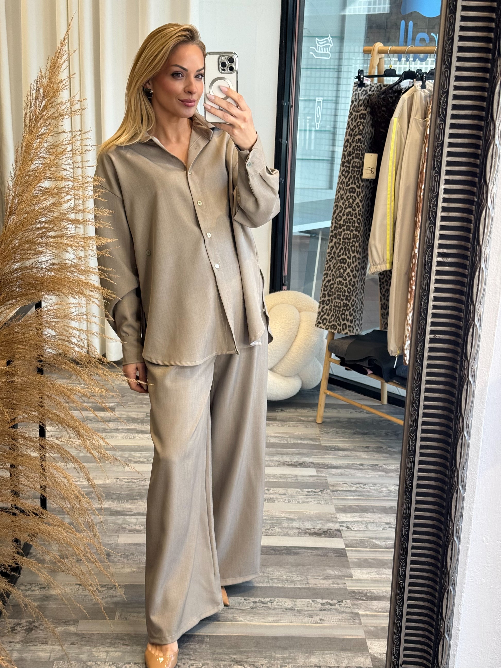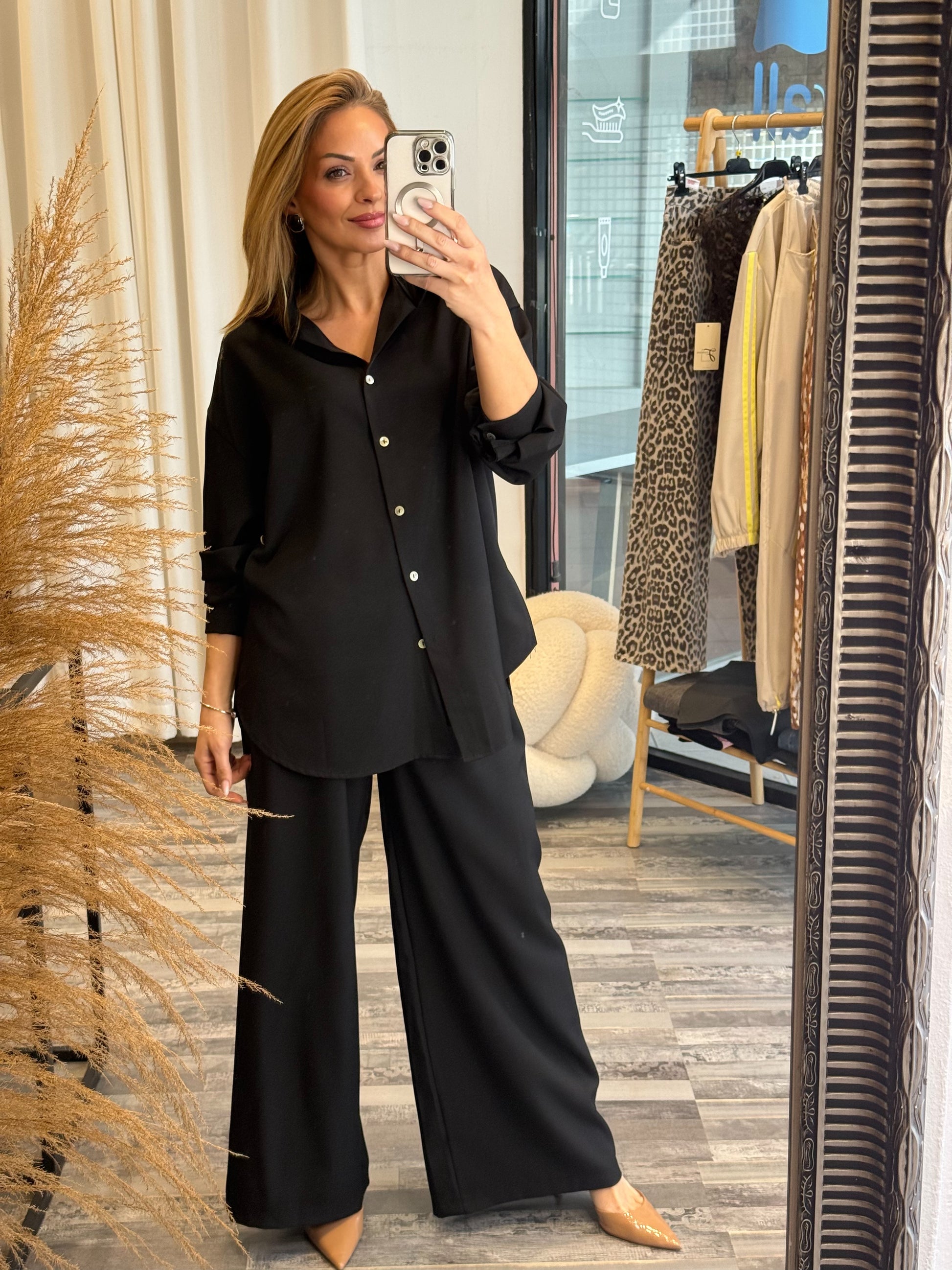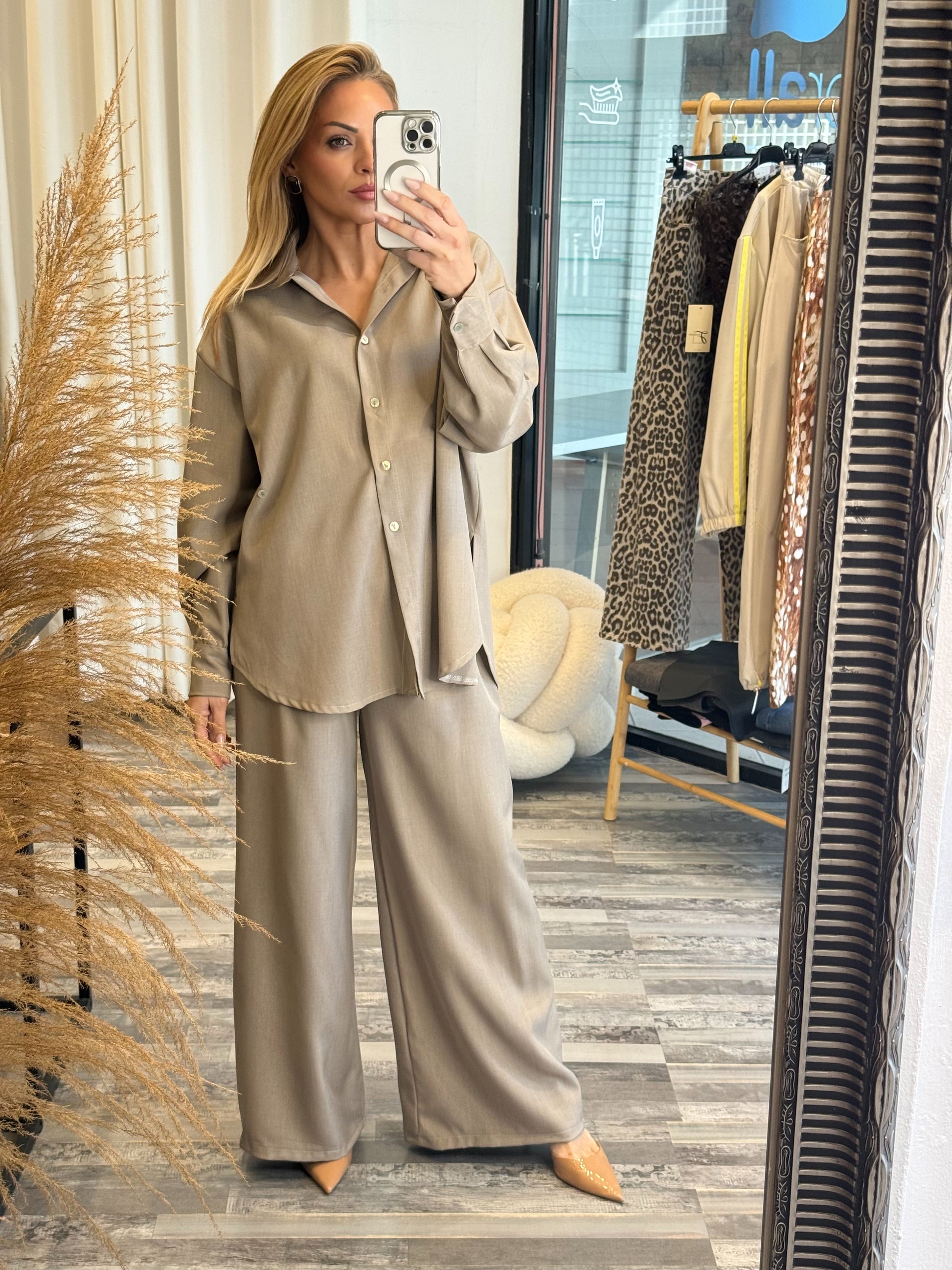 Μοντέρνο και άνετο σετ δύο τεμαχίων, ιδανικό για όλες τις ώρες της μέρας, από πρωινές εξόδους μέχρι casual βραδινές εμφανίσεις.
