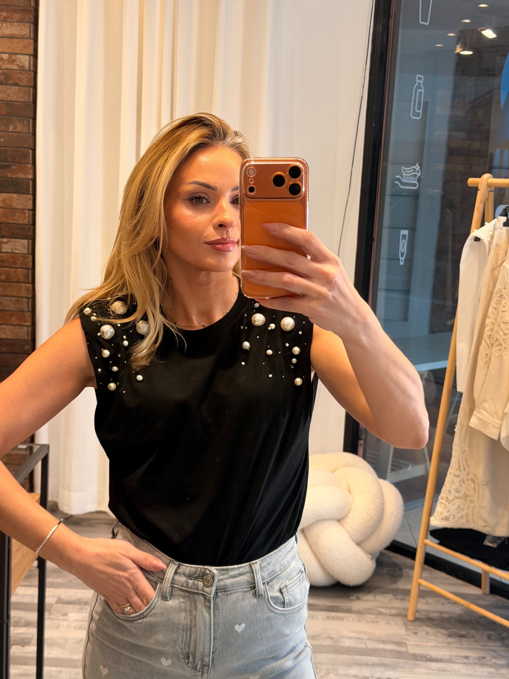 Τοπ με βάτες και πέρλες μαύρο
