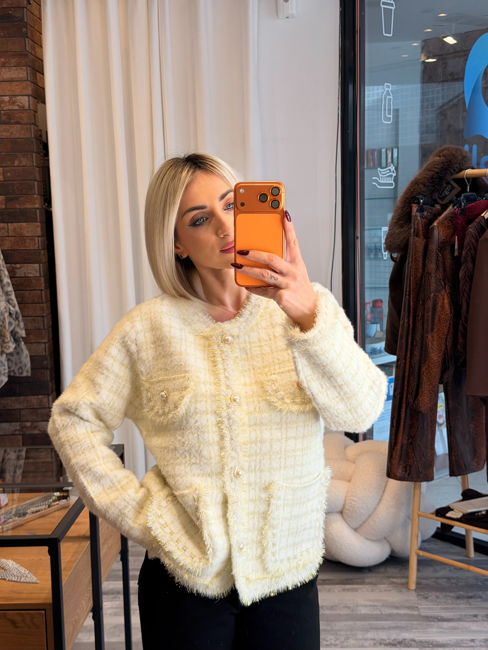 Ζακέτα Tweed με Χρυσή Κλωστή